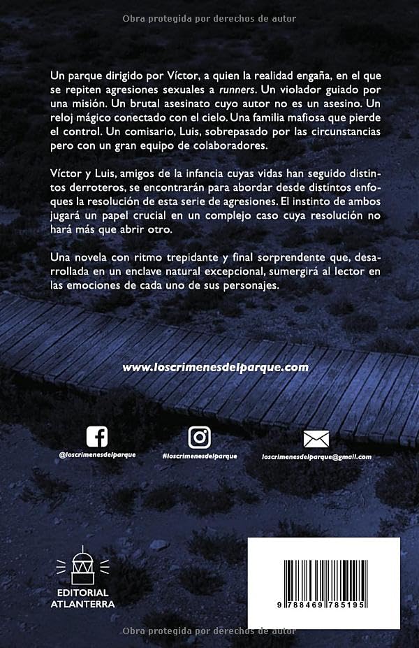 Un Parque dirigido por Víctor, a quien la realidad engaña, y en el que se repiten agresiones sexuales a corredoras. Un violador guiado por una misión. Un brutal asesinato cuyo autor no es un asesino. Un reloj mágico conectado al cielo. Una familia mafiosa que pierde el control. Y un comisario, Luis, sobrepasado por las circunstancias, cuyos heterodoxos métodos servirán para resolver un caso que no habrá hecho más que abrir otro.