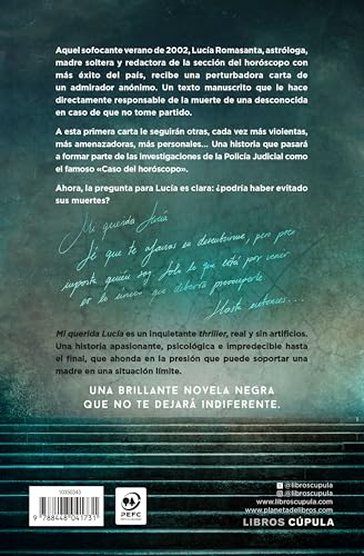 Aquel sofocante verano de 2002, Lucía Romasanta, astróloga, madre soltera y redactora de la sección del horóscopo con más éxito del país, recibe una perturbadora carta de un admirador anónimo. Un texto manuscrito que la hace directamente responsable de la muerte de una desconocida en caso de que no tome partido.